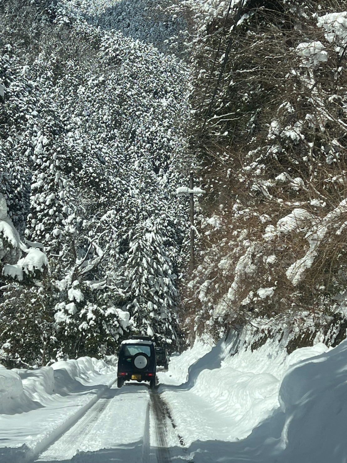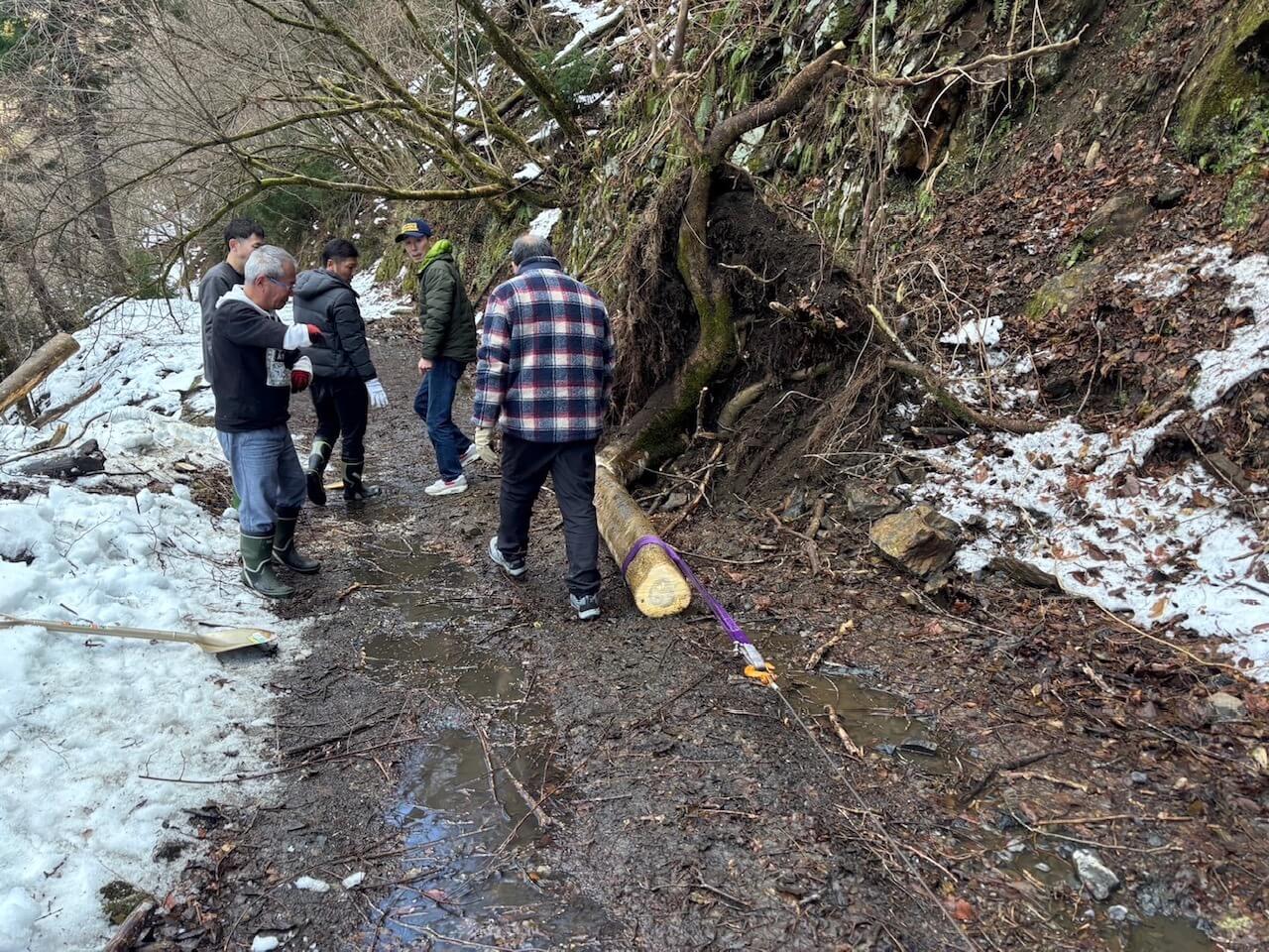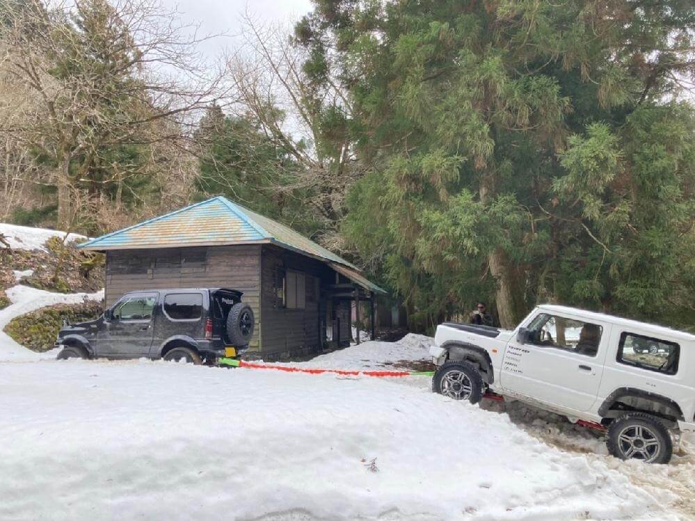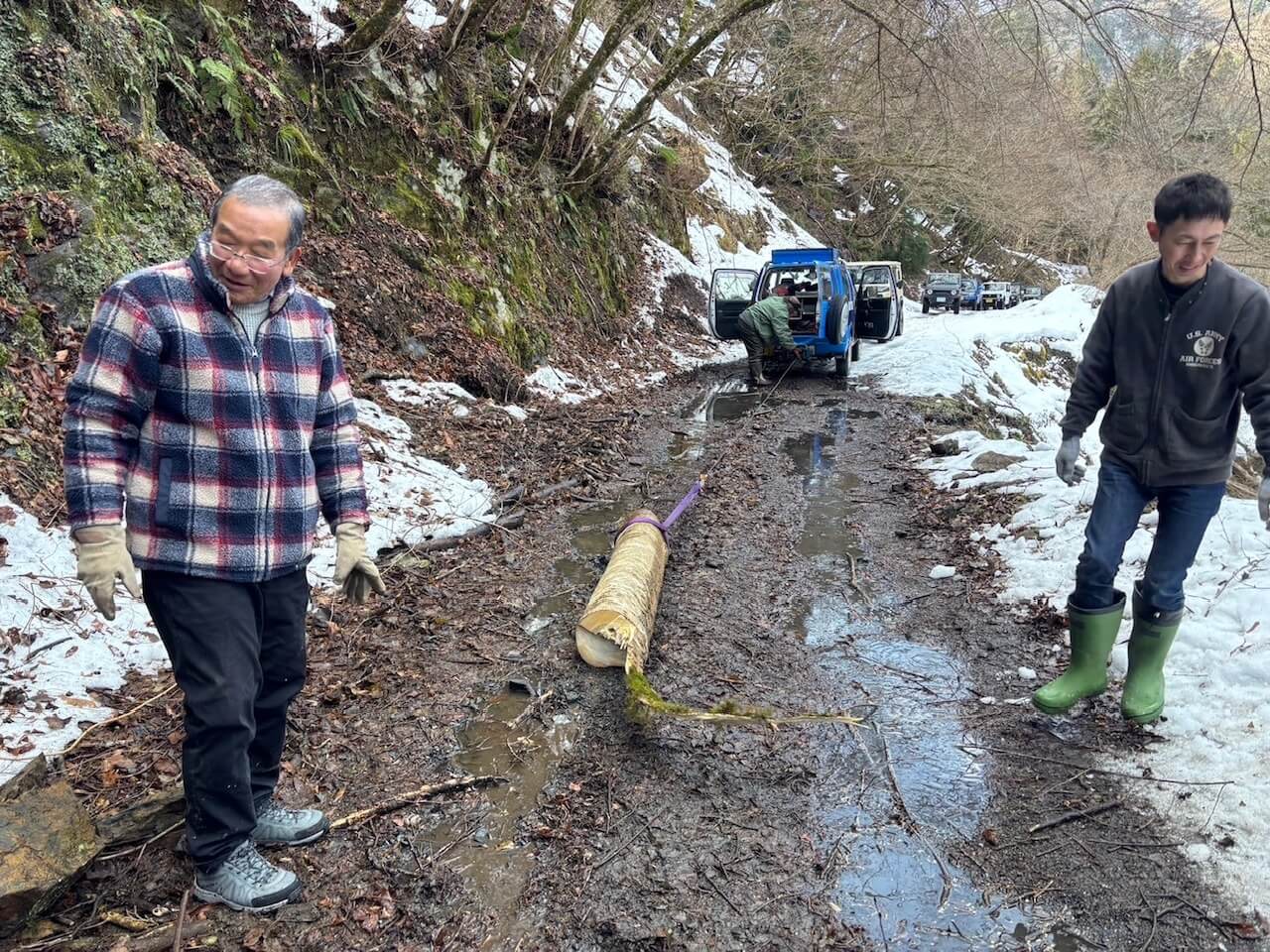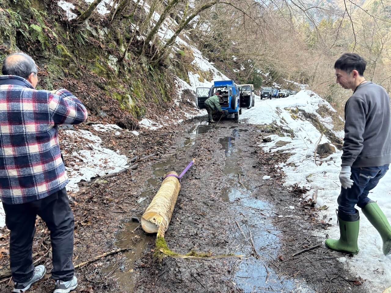 滋賀県 永源寺方面へ 2025 新年1月2日 7台での初走り♪ 雪道を楽しみながらの走行、林道途中は倒木を撤去しながら進みました。 チェーンソー大活躍と思いきや、しばらくして壊れてしまい後は交代でノコギリを使い処理しました。 お疲れ様! お昼は野菜たっぷりの鍋うどんをしました。皆さん美味しかったと大満足で良かったです♪