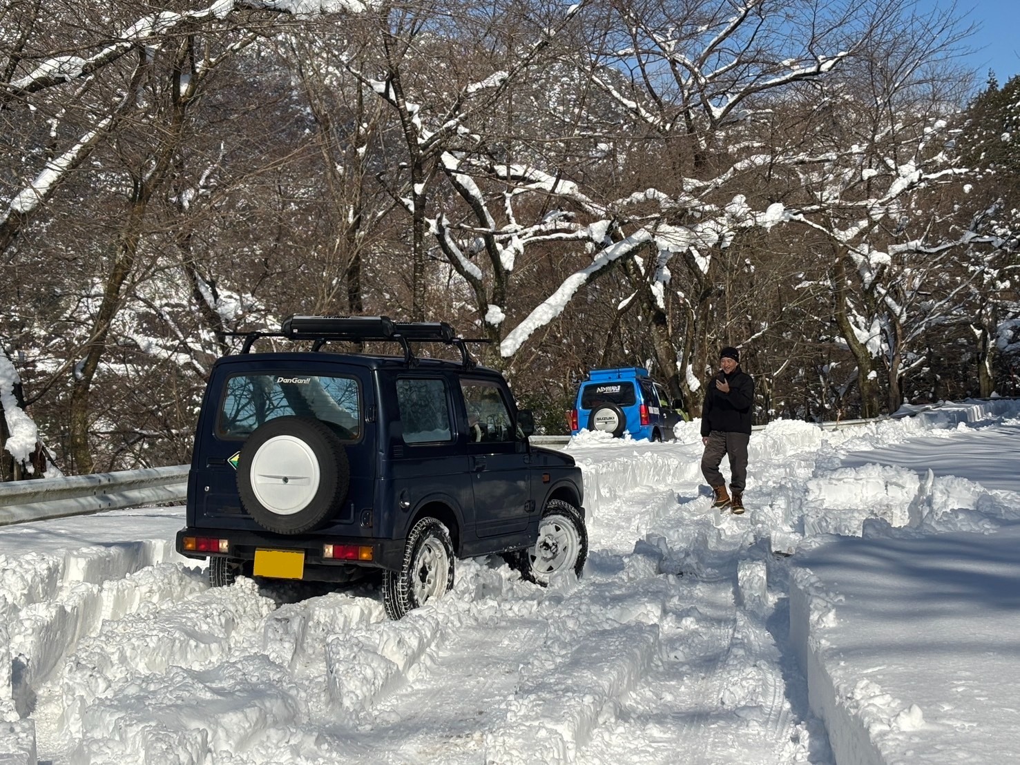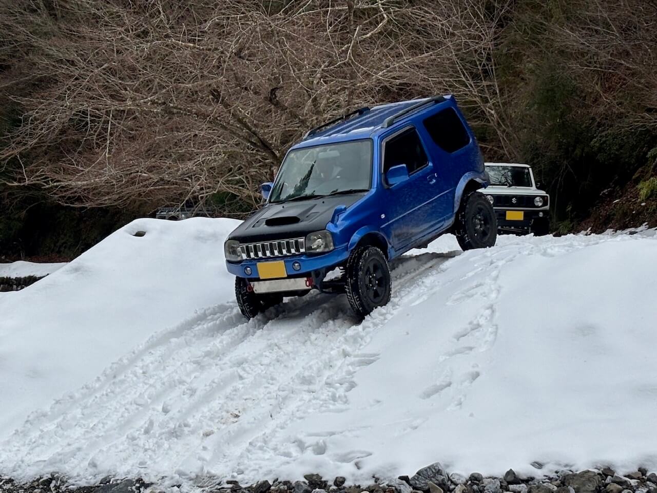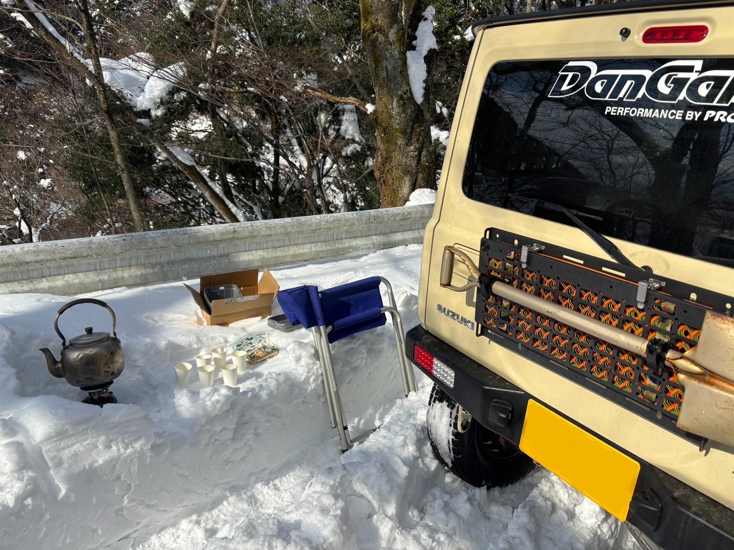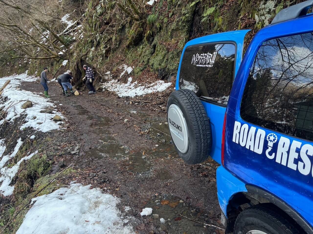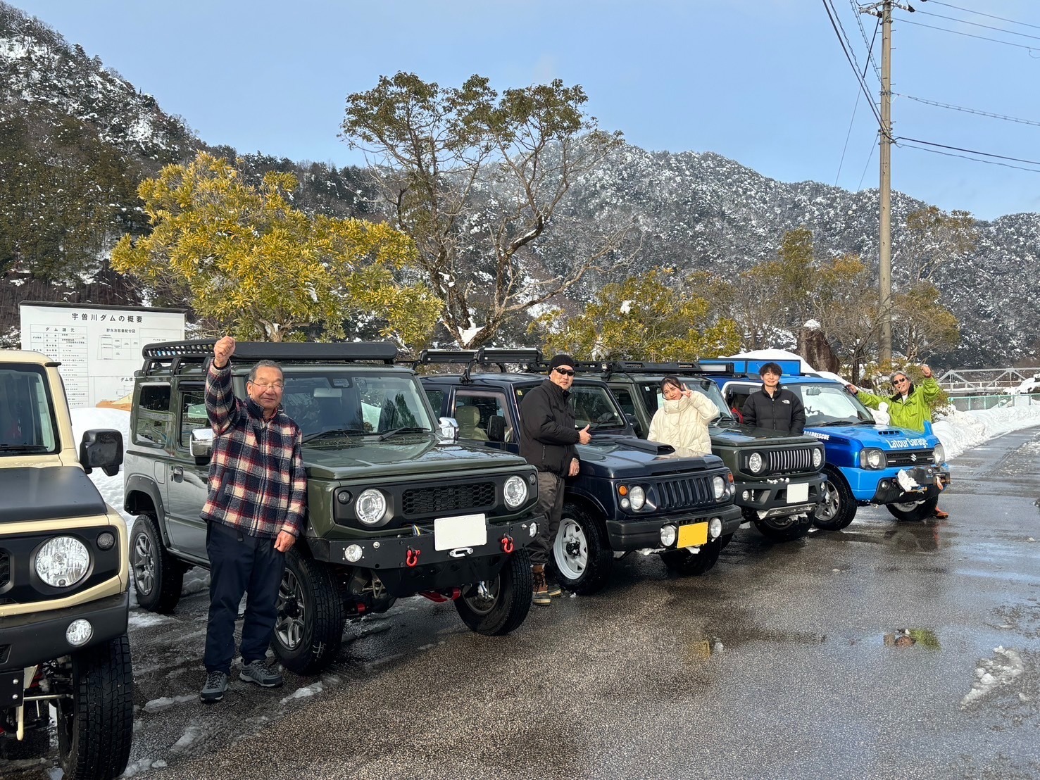 滋賀県 永源寺方面へ 2025 新年1月2日 7台での初走り♪ 雪道を楽しみながらの走行、林道途中は倒木を撤去しながら進みました。 チェーンソー大活躍と思いきや、しばらくして壊れてしまい後は交代でノコギリを使い処理しました。 お疲れ様! お昼は野菜たっぷりの鍋うどんをしました。皆さん美味しかったと大満足で良かったです♪