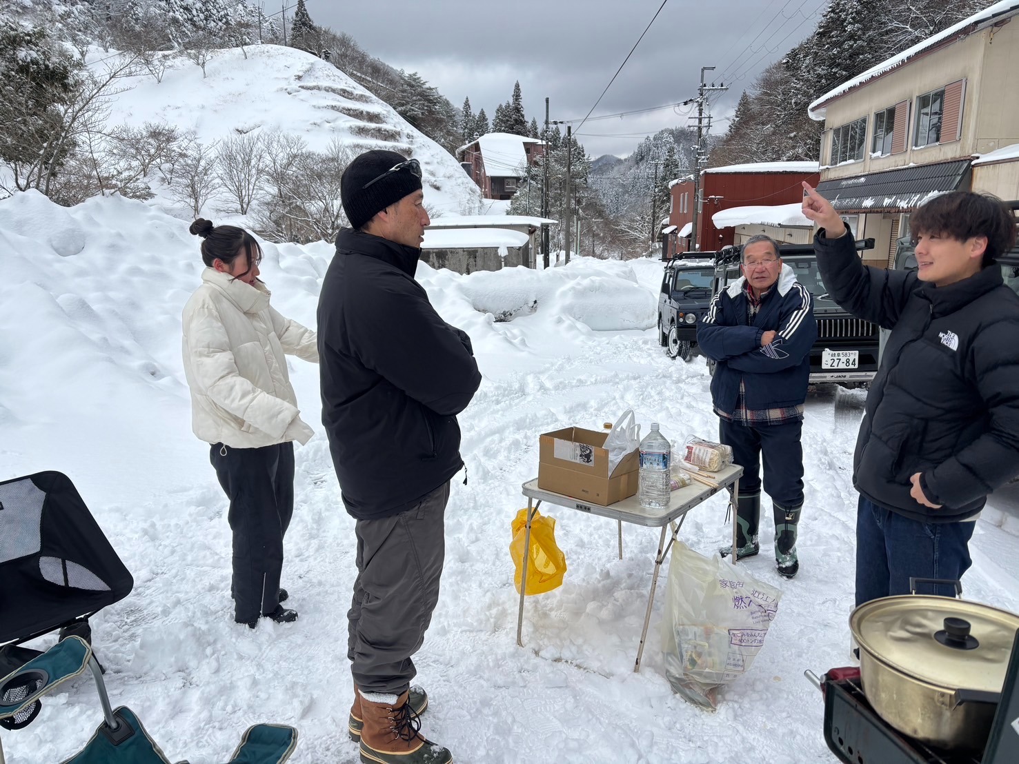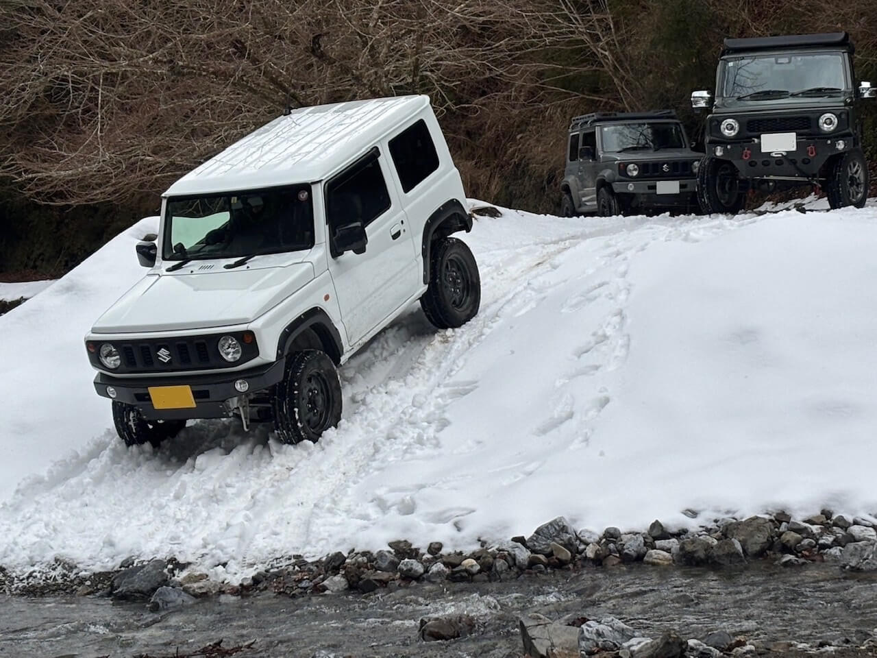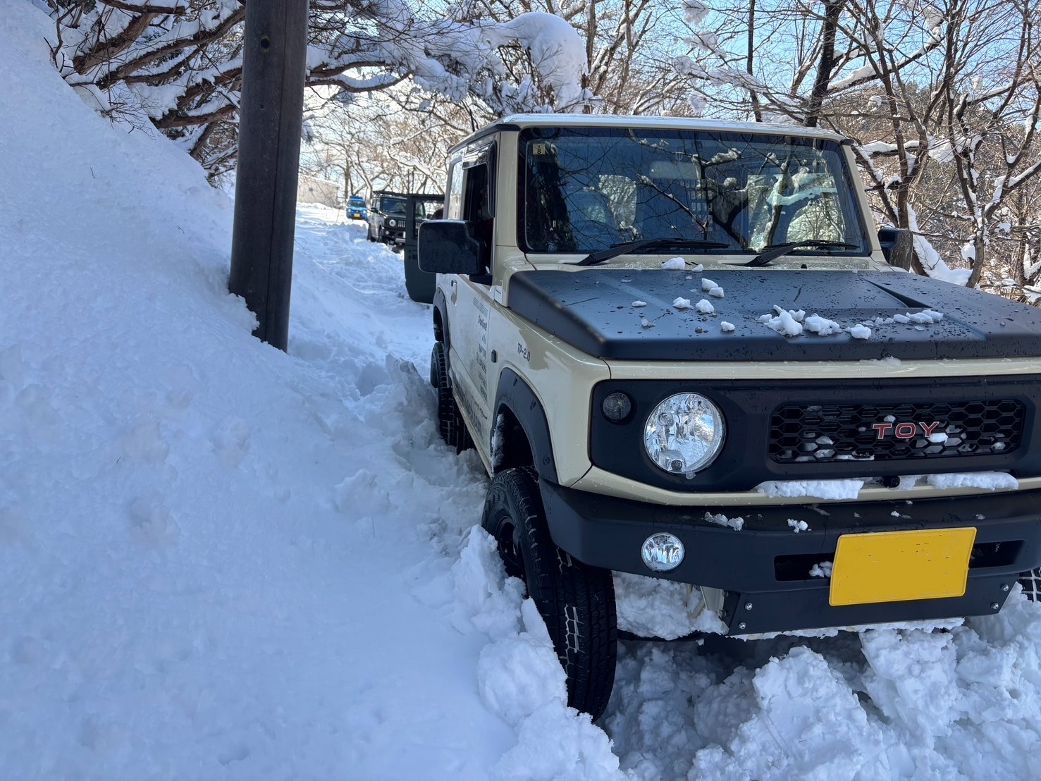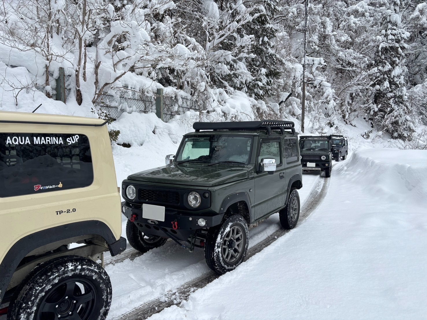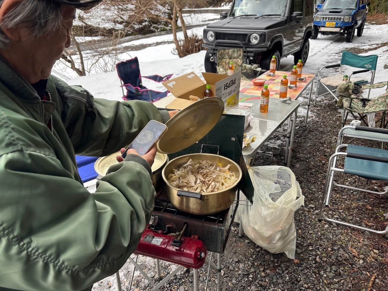 滋賀県 永源寺方面へ 2025 新年1月2日 7台での初走り♪ 雪道を楽しみながらの走行、林道途中は倒木を撤去しながら進みました。 チェーンソー大活躍と思いきや、しばらくして壊れてしまい後は交代でノコギリを使い処理しました。 お疲れ様! お昼は野菜たっぷりの鍋うどんをしました。皆さん美味しかったと大満足で良かったです♪