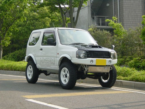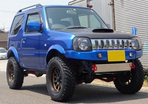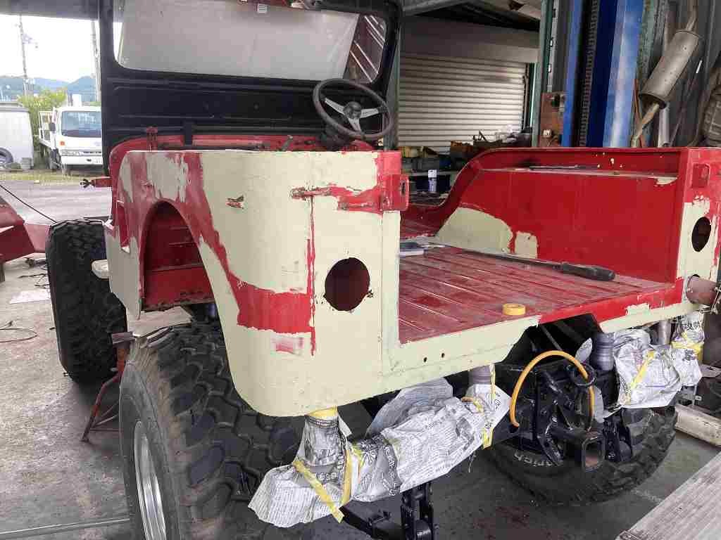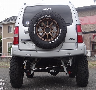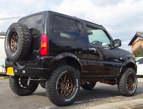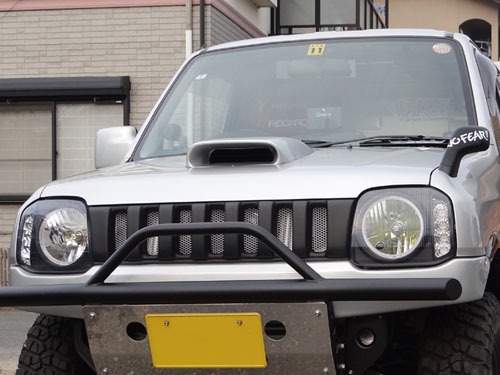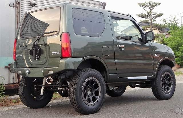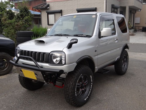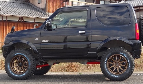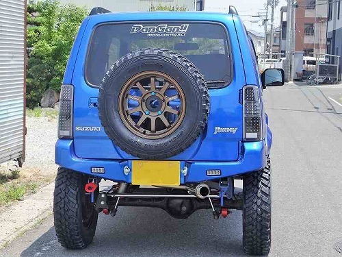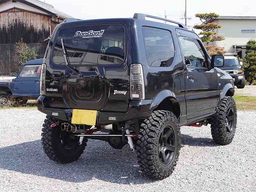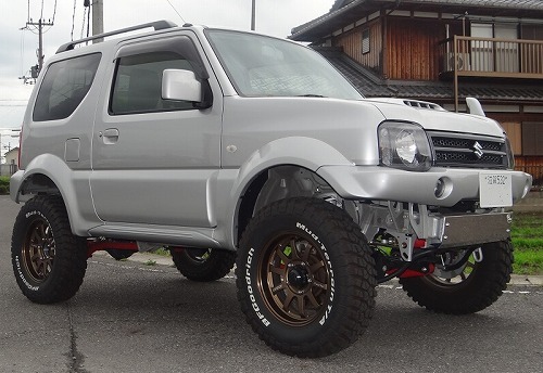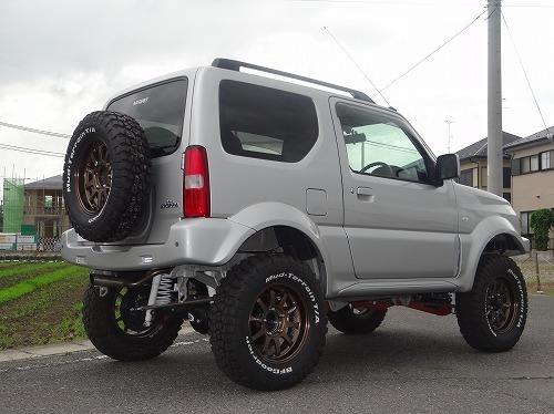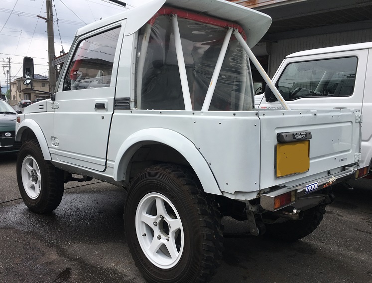バンをカットしてエクストラキャビンで脱着可。リアのボディカットが特異なジムトラ、オーバーフェンダーをスチールパイプで製作、全体にクロカンのイメージで製作しました。