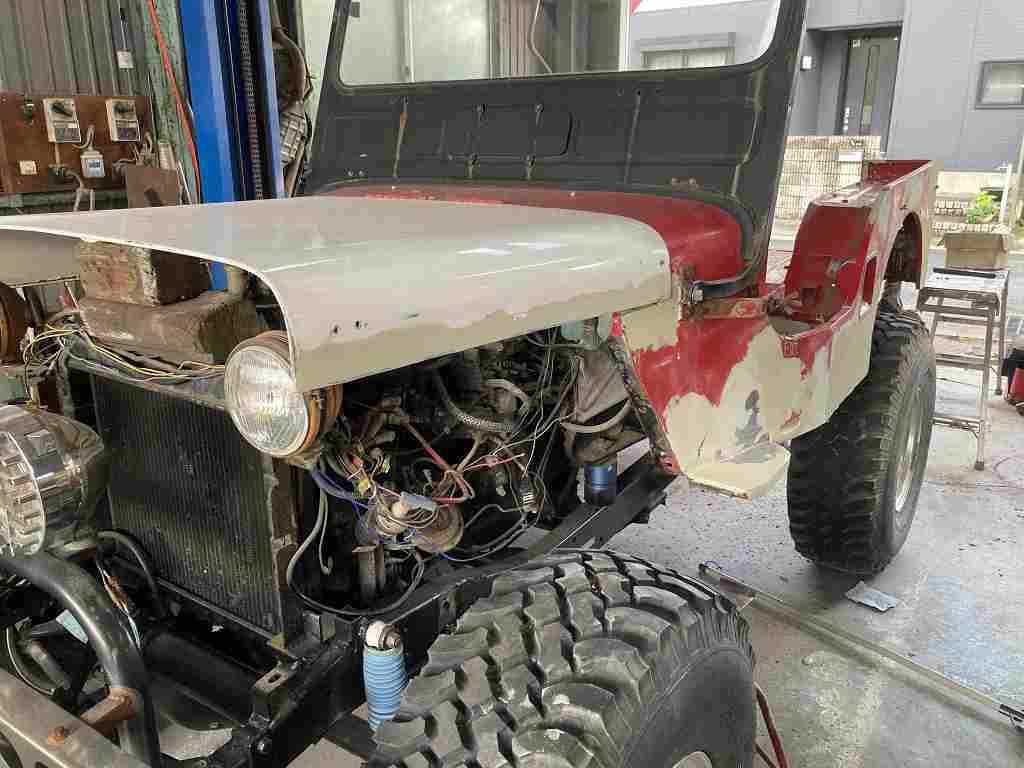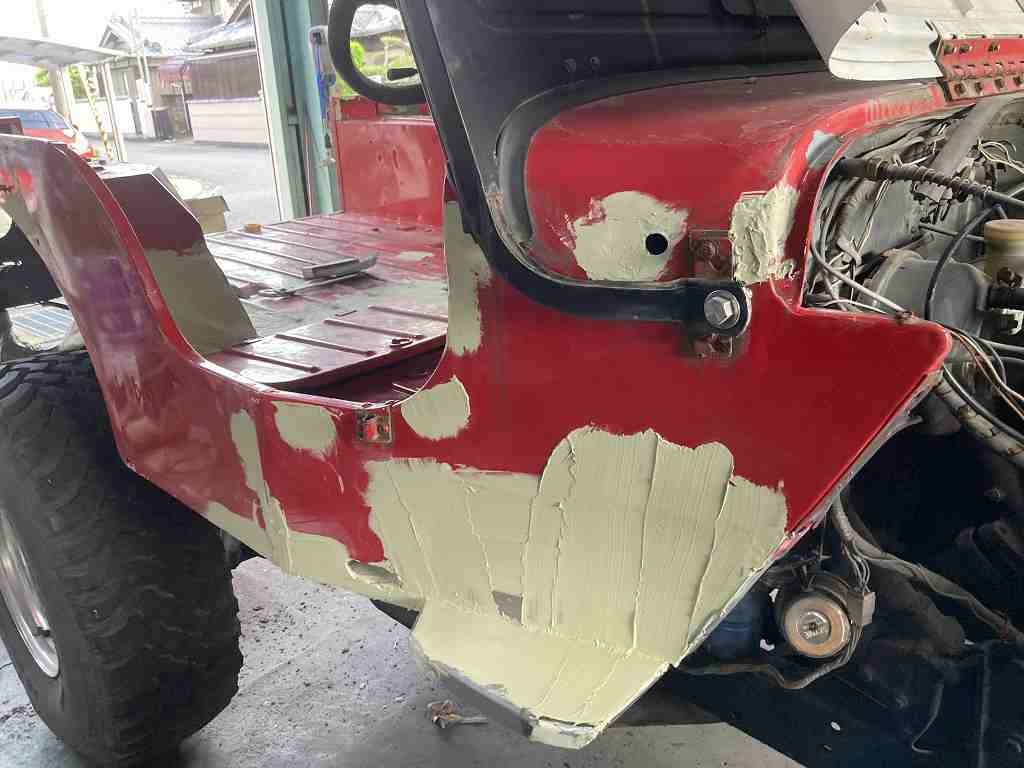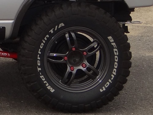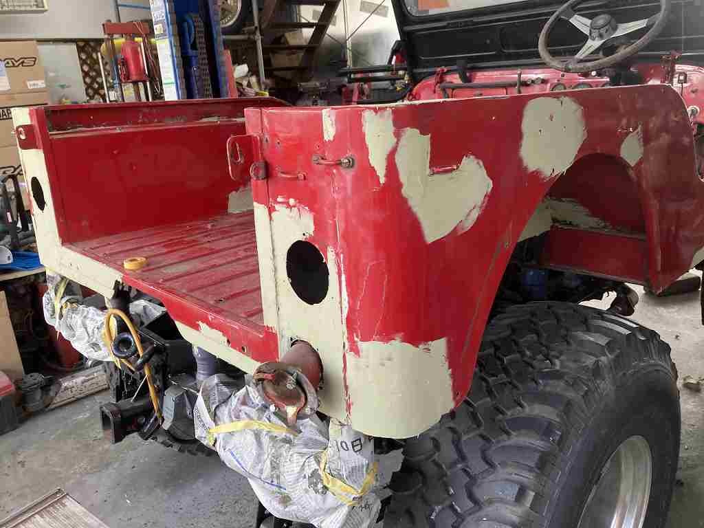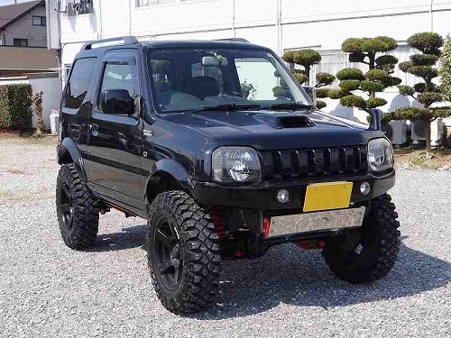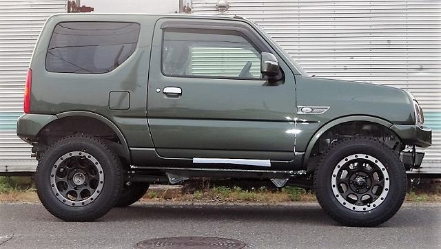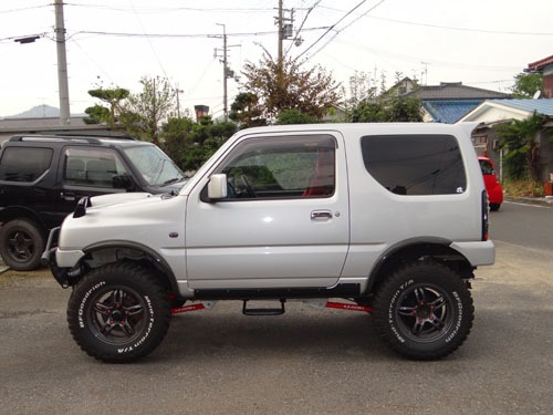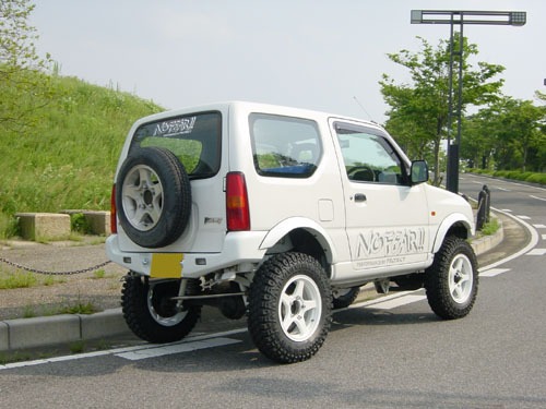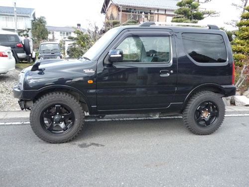 バンをカットしてエクストラキャビンで脱着可。リアのボディカットが特異なジムトラ、オーバーフェンダーをスチールパイプで製作、全体にクロカンのイメージで製作しました。